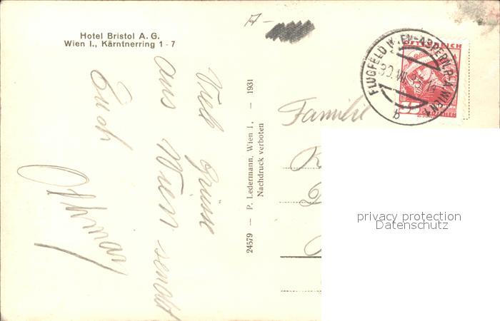 71812359 alte Postkarte Wien Hotel Bristol Kaerntnerring postalisch gelaufen Erhaltung siehe scans KatCode: 11390130090001