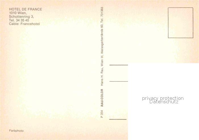72820991 Wien Hotel de France Stephansdom Schloss Schoenbrunn Nymphenbrunnen Rathaus postalisch nicht gelaufen Erhaltung siehe scans [FriedD77] KatCode: 11390130090001