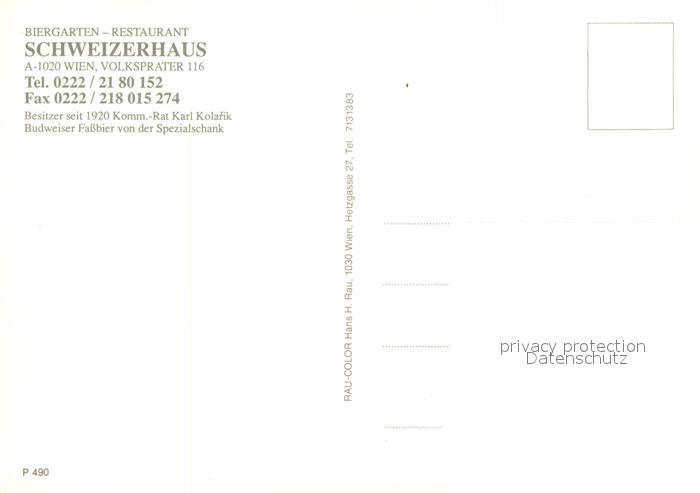 73185213 Wien Restaurant Biergarten Schweizerhaus Volksprater postalisch nicht gelaufen Erhaltung siehe scans [LiesaD40] KatCode: 11390130090001