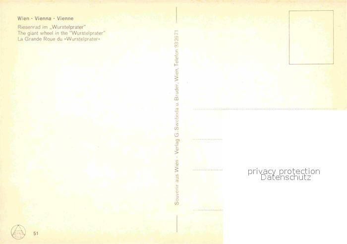 72800589 Wien Riesenrad im Wurstelprater postalisch nicht gelaufen Erhaltung siehe scans [FriedD77] KatCode: 11390130090001
