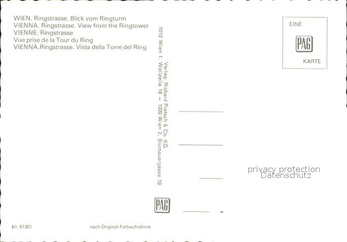 72224358 Wien Ringstrasse vom Ringturm postalisch nicht gelaufen Erhaltung siehe scans KatCode: 11390130090001