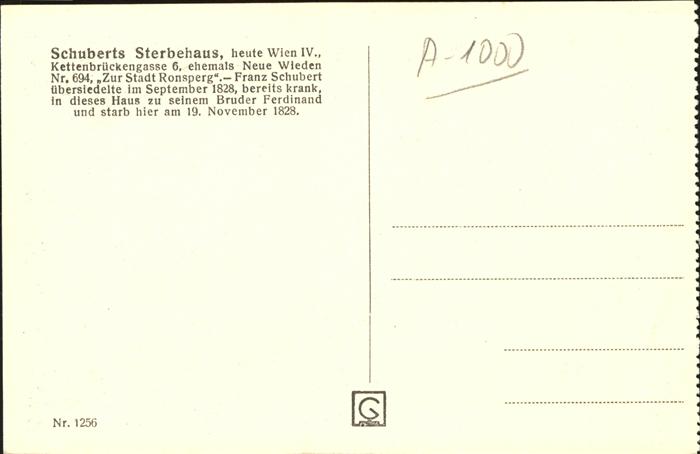 11267314 Wien Schuberts Sterbehaus KatCode 11390130090001