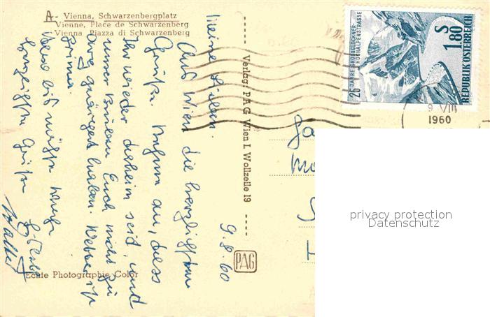 72788107 alte Postkarte Wien Schwarzenbergplatz postalisch gelaufen Erhaltung siehe scans [AndreD76] KatCode: 11390130090001