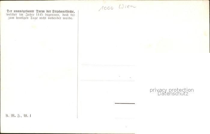 71555254 Wien Unausgebaute Turm der Stephanskirche Kuenstlerkarte postalisch nicht gelaufen Erhaltung siehe scans KatCode: 11390130090001