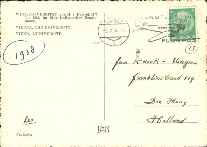 71060596 alte Postkarte Wien Univeritaet postalisch gelaufen KatCode: 11390130090001