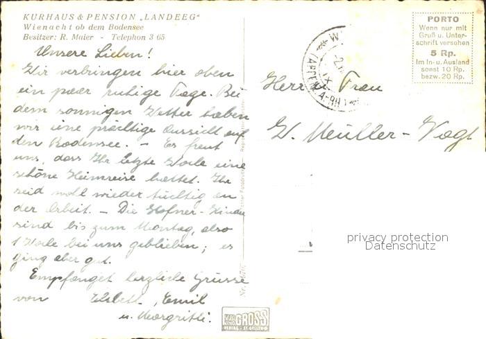 11622365 alte Postkarte Wienacht-Tobel Kurhaus Pension Landegg postalisch gelaufen Erhaltung siehe scans KatCode: 11470020070566