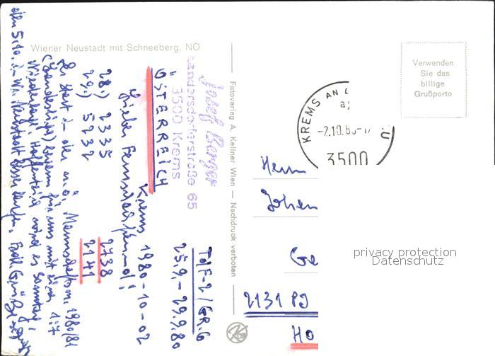 72400347 alte Postkarte Wiener Neustadt mit Schneeberg postalisch gelaufen Erhaltung siehe scans KatCode: 11390122030401
