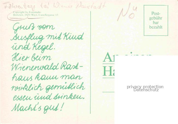 74156692 WIENER-NEUSTADT Niederoesterreich AT Rasthaus-Foehrenberg Wienerwald-Restaurant Raststaette Blumenwiese Parkplatz Niederoesterreich postalisch nicht gelaufen Erhaltung siehe scans [Karloger] KatCode: 11390122030401