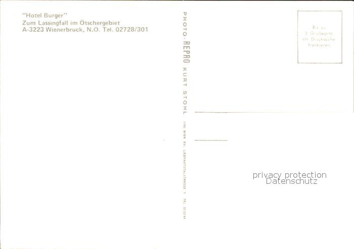 72002013 Wienerbruck Hotel Burger postalisch nicht gelaufen Erhaltung siehe scans KatCode: 11390