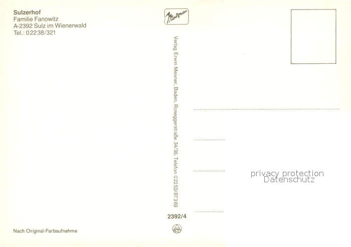 73049878 Wienerwald Sulzerhof postalisch nicht gelaufen Erhaltung siehe scans [KathaD81] KatCode: 11390127031726