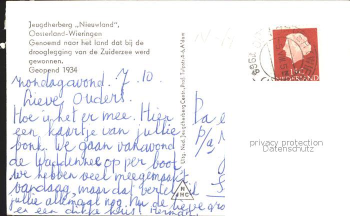 alte Postkarte Wieringen Jeugdherberg Nieuwland Jugendherberge postalisch gelaufen Erhaltung siehe scans