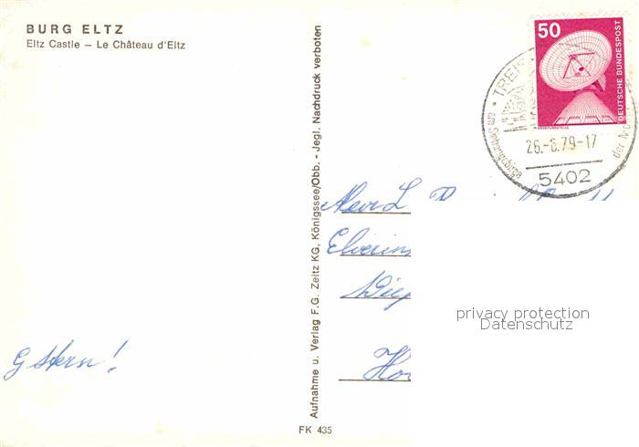 72783456 alte Postkarte Wierschem Burg Eltz postalisch gelaufen Erhaltung siehe scans [WerneD78] KatCode: 11110007137114