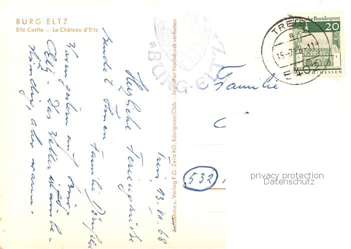 73836798 alte Postkarte Wierschem Burg Eltz postalisch gelaufen Erhaltung siehe scans [FriedD77] KatCode: 11110007137114