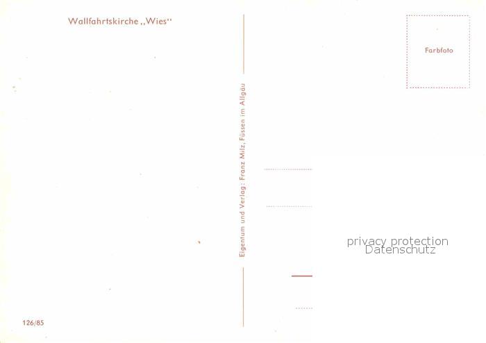 72738876 Wies Allgaeu Wallfahrtskirche postalisch nicht gelaufen Erhaltung siehe scans [LiesaD40] KatCode: 11110009780140