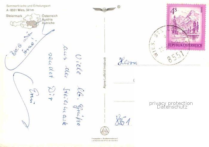72671489 alte Postkarte Wies Steiermark Fliegeraufnahme postalisch gelaufen Erhaltung siehe scans [WerneD78] KatCode: 11390225060343