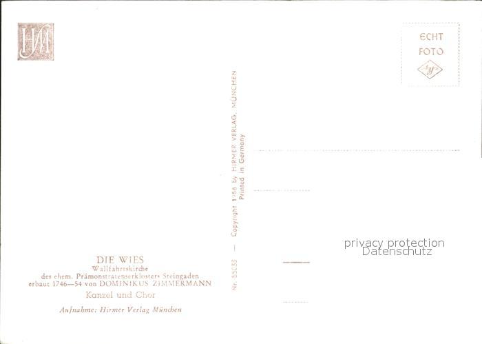72347766 Wies Steingaden Kanzel Chor Wallfahrtskirche ehem. Praemonstratenserkloster postalisch nicht gelaufen Erhaltung siehe scans KatCode: 11110009190154