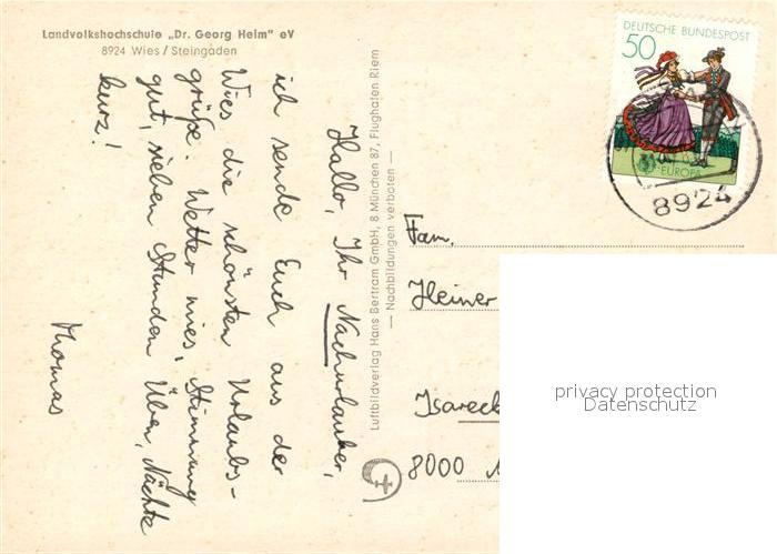 73084393 alte Postkarte Wies Steingaden Landvolkshochschule Dr Georg Heim eV Fliegeraufnahme postalisch gelaufen Erhaltung siehe scans [FriedD77] KatCode: 11110009190154
