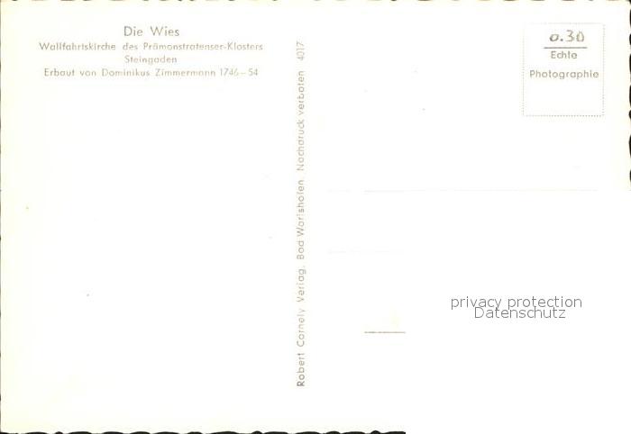 72347693 Wies Steingaden Wallfahrtskirche Praemonstratenser Kloster 18. Jhdt. Altar postalisch nicht gelaufen Erhaltung siehe scans KatCode: 11110009190154