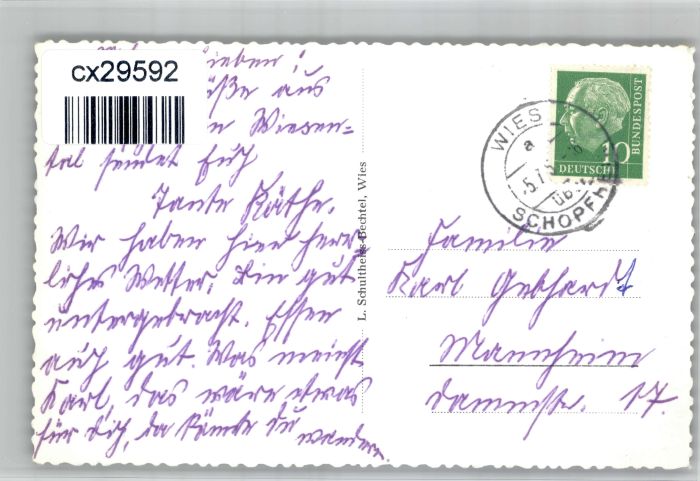 30924161 alte Postkarte Wies Wiesental postalisch gelaufen KatCode: 11110008336097