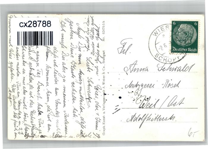 30910616 alte Postkarte Wies Wiesental Amt Schopfheim postalisch gelaufen KatCode: 11110008336097