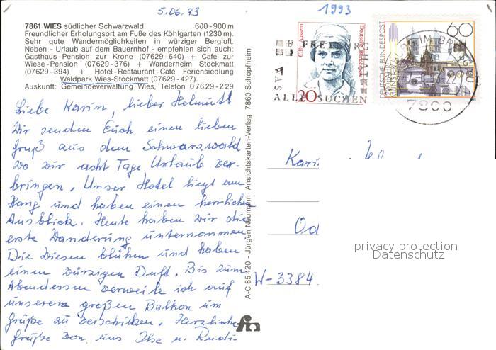 72525302 alte Postkarte Wies Wiesental Panorama Gasthaus Krone Bauernhof Wiese Pension postalisch gelaufen Erhaltung siehe scans KatCode: 11110008336097