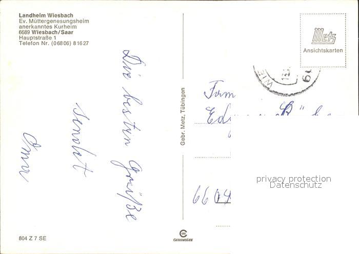 72156002 alte Postkarte Wiesbach Saarland Landheim ev Muettergenesungsheim Kurheim postalisch gelaufen Erhaltung siehe scans KatCode: 11110010043111