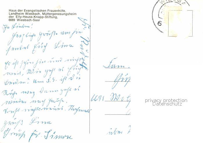 72754432 alte Postkarte Wiesbach Saarland Landheim Wiesbach Muettergenesungsheim postalisch gelaufen Erhaltung siehe scans [WerneD78] KatCode: 11110010043111
