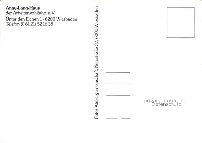 72463041 Wiesbaden Anny Lang Haus AWO postalisch nicht gelaufen Erhaltung siehe scans KatCode: 11110006414000