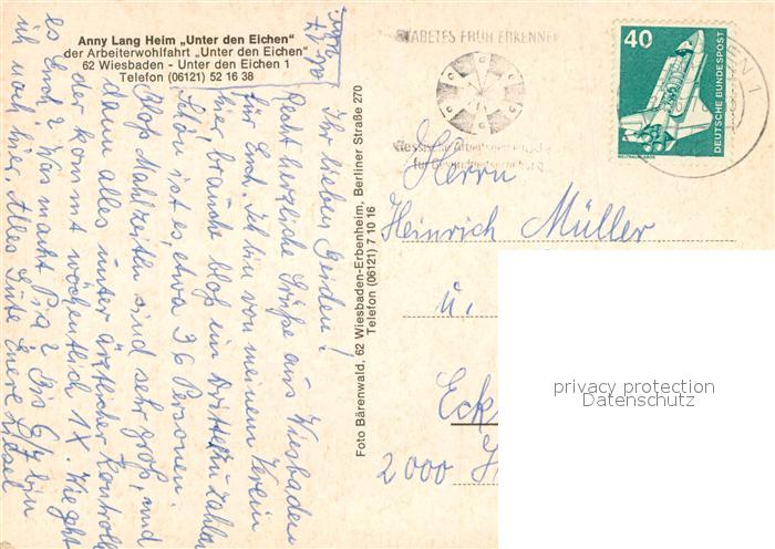 72956002 alte Postkarte Wiesbaden Anny Lang Heim Unter den Eichen postalisch gelaufen Erhaltung siehe scans [PaolaD17] KatCode: 11110006414000