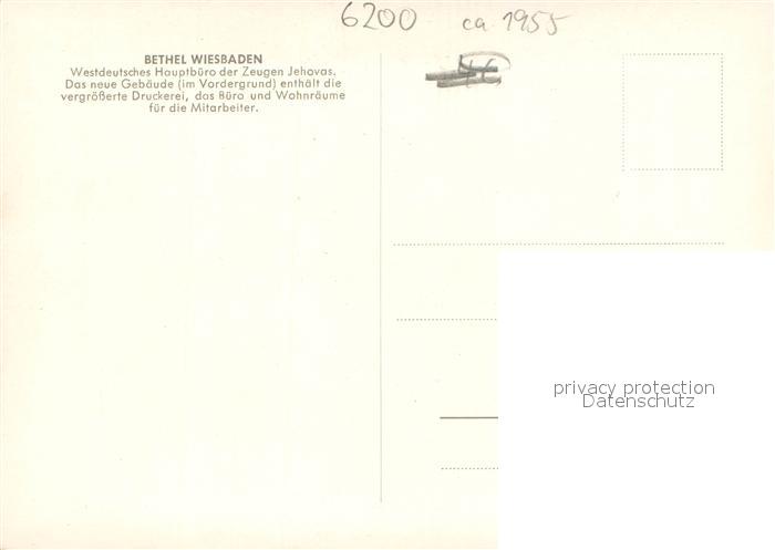 73697438 Wiesbaden Bethel Westdeutsches Hauptbuero der Zeugen Jehovas postalisch nicht gelaufen Erhaltung siehe scans [LiesaD40] KatCode: 11110006414000