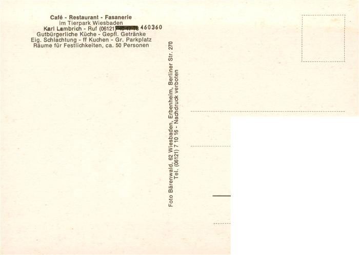 73888349 Wiesbaden Cafe Restaurant Fasanerie Gastraeume Ortspartie postalisch nicht gelaufen Erhaltung siehe scans [WerneD78] KatCode: 11110006414000