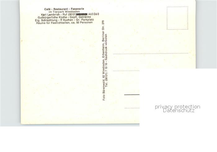 72612689 Wiesbaden Cafe Restaurant Fasanerie Gastraum Aussenansicht postalisch nicht gelaufen Erhaltung siehe scans [AndreD76] KatCode: 11110006414000