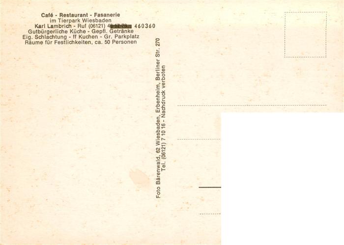73888981 Wiesbaden Cafe Restaurant Fasanerie im Tierpark Gastraeume postalisch nicht gelaufen Erhaltung siehe scans [WerneD78] KatCode: 11110006414000