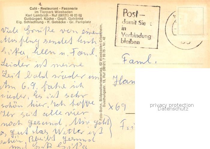 73568847 alte Postkarte Wiesbaden Cafe Restaurant Fasanerie postalisch gelaufen Erhaltung siehe scans [FriedD77] KatCode: 11110006414000
