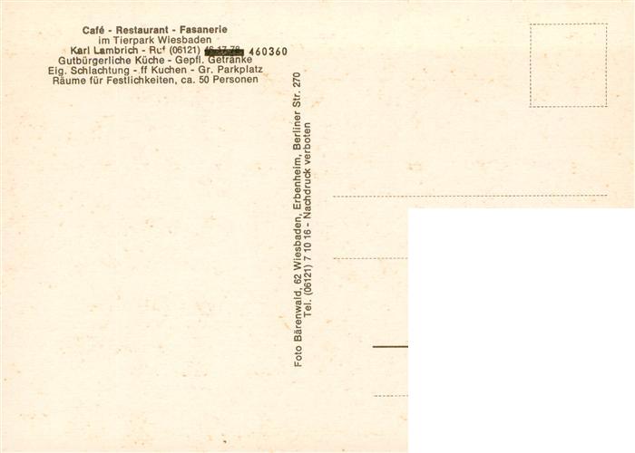 73891242 Wiesbaden Cafe Restaurant im Tierpark Wiesbaden Fasanerie Gastraeume postalisch nicht gelaufen Erhaltung siehe scans [WerneD78] KatCode: 11110006414000