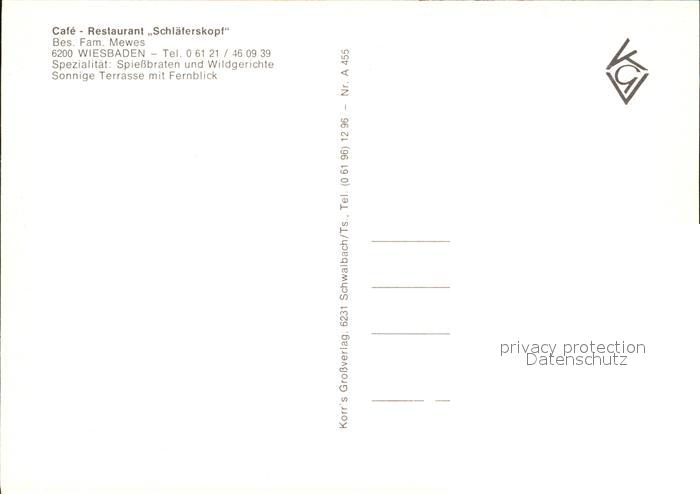 72570227 Wiesbaden Cafe Restaurant Schlaeferkopf postalisch nicht gelaufen Erhaltung siehe scans [LiesaD40] KatCode: 11110006414000