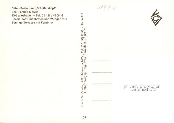 72925518 Wiesbaden Cafe Restaurant Schlaeferskopf postalisch nicht gelaufen Erhaltung siehe scans [NatalD47] KatCode: 11110006414000