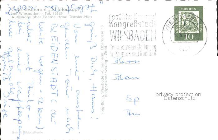 72513654 alte Postkarte Wiesbaden Cafe Restaurant Schlaeferskopf Terrasse postalisch gelaufen Erhaltung siehe scans KatCode: 11110006414000