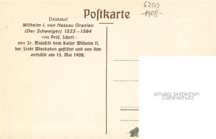 73696569 Wiesbaden Denkmal Wilhelm 1. von Nassau Oranien postalisch nicht gelaufen Erhaltung siehe scans [LiesaD40] KatCode: 11110006414000