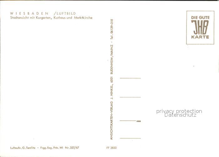 72569781 Wiesbaden Fliegeraufnahme mit Kurgarten Kurhaus Marktkirche postalisch nicht gelaufen Erhaltung siehe scans [LiesaD40] KatCode: 11110006414000