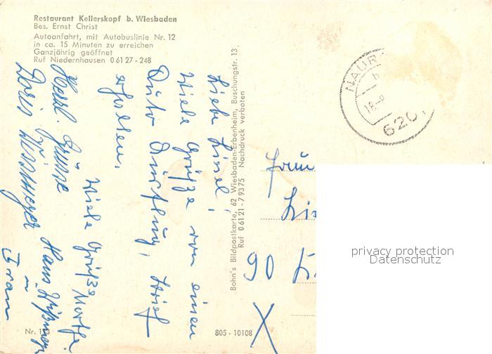 73185235 alte Postkarte Wiesbaden Fliegeraufnahme Restaurant Kellerskopf postalisch gelaufen Erhaltung siehe scans [LiesaD40] KatCode: 11110006414000