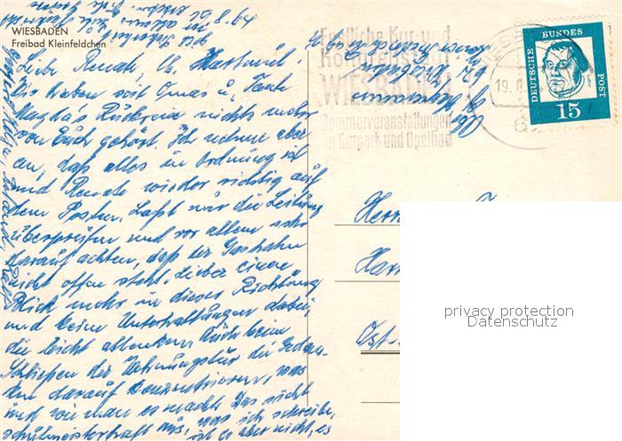 73105577 alte Postkarte Wiesbaden Freibad Kleinfeldchen postalisch gelaufen Erhaltung siehe scans [WerneD78] KatCode: 11110006414000