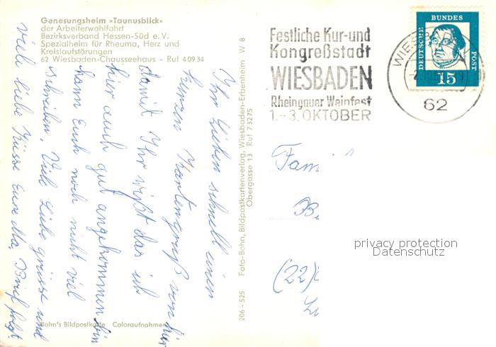 73054650 alte Postkarte Wiesbaden Genesungsheim Taunusblick postalisch gelaufen Erhaltung siehe scans [NatalD47] KatCode: 11110006414000