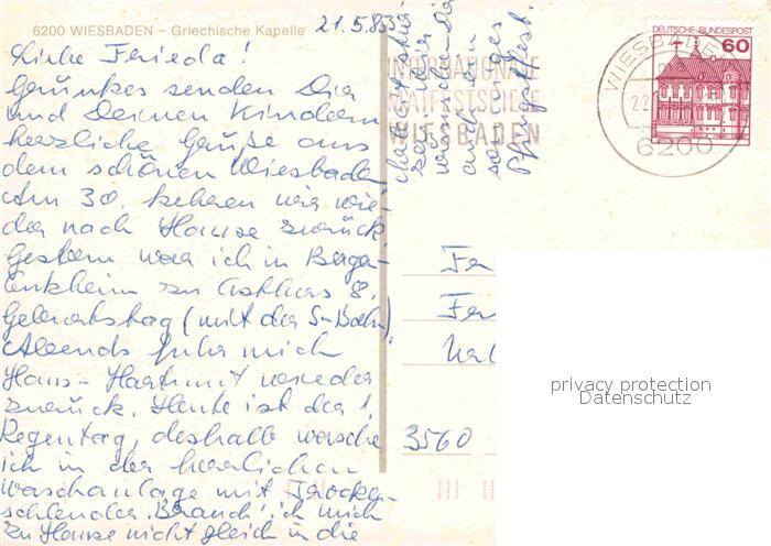 72885029 alte Postkarte Wiesbaden Griechische Kapelle postalisch gelaufen Erhaltung siehe scans [FriedD77] KatCode: 11110006414000