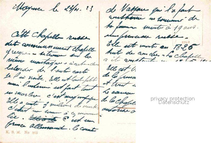 72813717 alte Postkarte Wiesbaden Griechische Kapelle am Neroberg postalisch gelaufen Erhaltung siehe scans [AndreD76] KatCode: 11110006414000