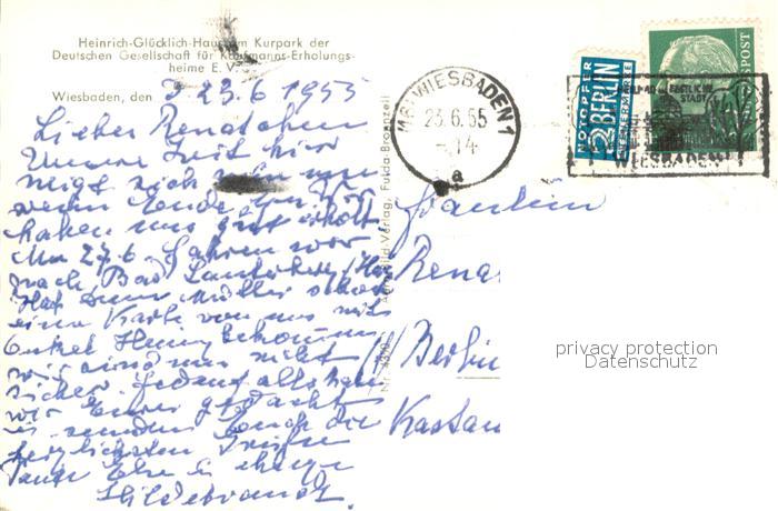 73646913 alte Postkarte Wiesbaden Heinrich Gluecklich Haus am Kurpark Fliegeraufnahme postalisch gelaufen Erhaltung siehe scans [WerneD78] KatCode: 11110006414000
