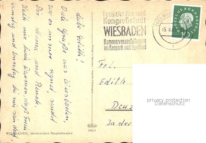 72512688 alte Postkarte Wiesbaden Hessisches Staatstheater postalisch gelaufen Erhaltung siehe scans KatCode: 11110006414000