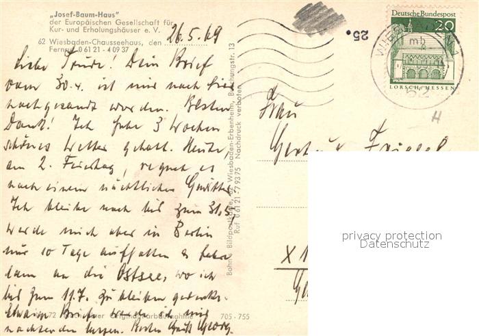 73018882 alte Postkarte Wiesbaden Josef-Baum-Haus postalisch gelaufen Erhaltung siehe scans [NatalD47] KatCode: 11110006414000