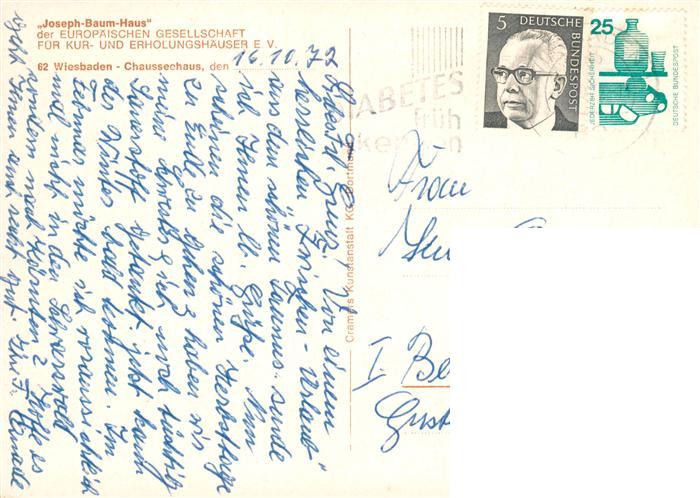 73878764 alte Postkarte Wiesbaden Joseph Baum Haus Gastraeume Terrasse Park postalisch gelaufen Erhaltung siehe scans [WerneD78] KatCode: 11110006414000