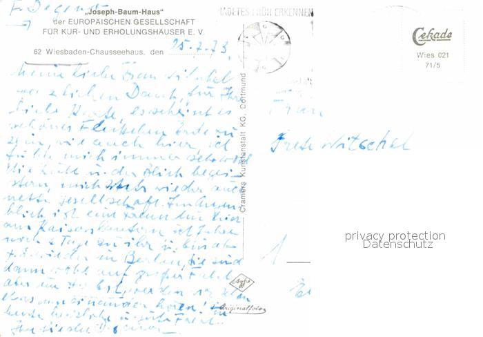 72793768 alte Postkarte Wiesbaden Joseph-Baum-Haus postalisch gelaufen Erhaltung siehe scans [AndreD76] KatCode: 11110006414000